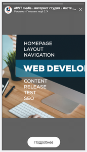 3. Истории. Реклама идет в специальном динамическом разделе соцсетей. До недавнего времени Истории были только в Инстаграмме и Фейсбук. А сейчас подобная практика внедрена в Одноклассниках и ВКонтакте. Запуск в Историях обеспечивает высокую вовлеченность. Объявление занимает весь экран телефона, поэтому сразу бросается в глаза.